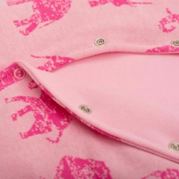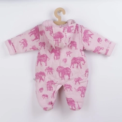 Ta topli dojenčkov kombinezon je idealen za hladnejše dni. Prijeten material z bombažno podlogo zagotavlja nežen stik z dojenčkovo kožo, medtem ko antialergijsko polnilo nudi zanesljivo toploto brez draženja. Ljubek potisk slonov in rožnata barva bosta razveselila vse ljubitelje nežnega dizajna.