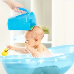 Zaradi lahke in trpežne zasnove je rokovanje s posodico preprosto, gladka površina se hitro očisti, ergonomski ročaj pa dobro sede v roko. Praktična oblika z izlivom pomaga natančno usmerjati vodni tok in skrajša čas izpiranja, kar bodo cenili tako otroci kot starši.