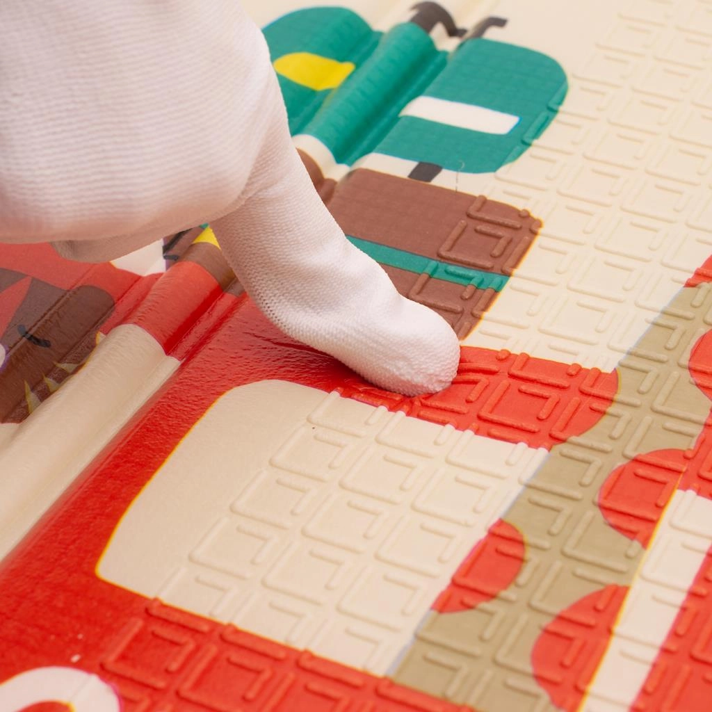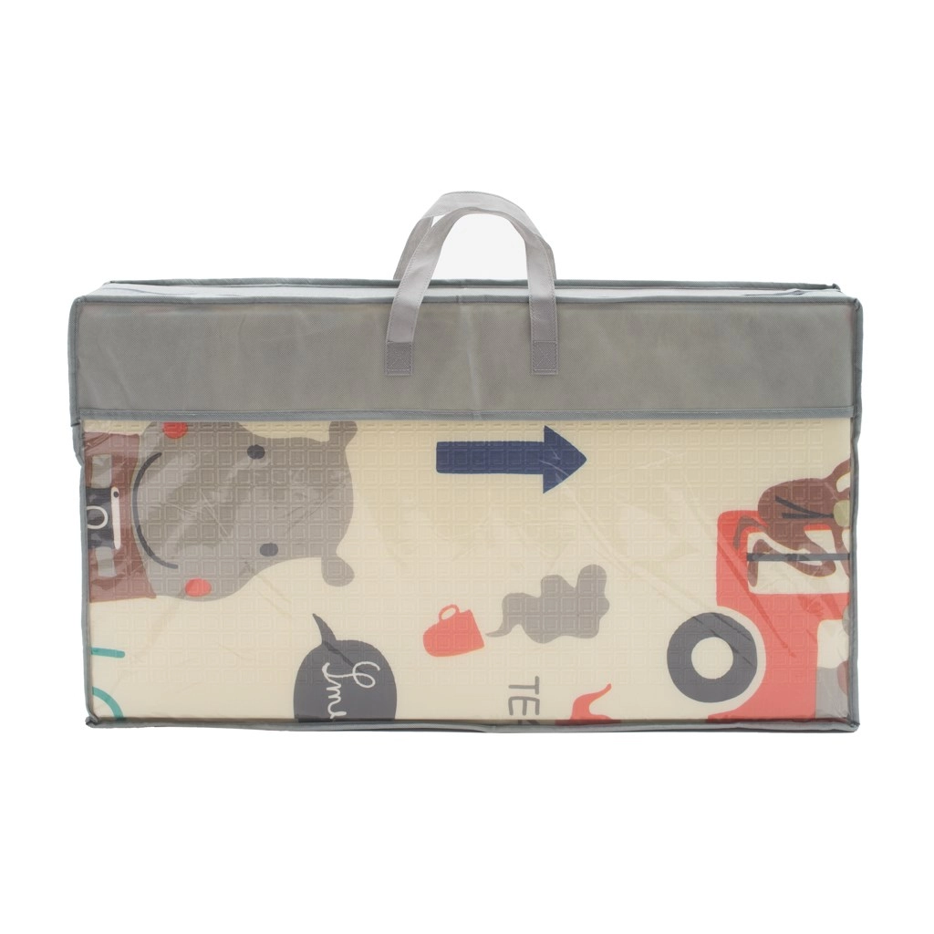 Uživajte v udobni in varni igri ter sprostitvi z večnamensko podlogo PLAYTO LONDON. Zahvaljujoč velikodušnim meram 200 × 150 × 1 cm nudi dovolj prostora za otroke, domačo vadbo in skupne aktivnosti. Dvostranski dizajn poživi interier in hkrati ponuja praktično uporabo doma, na vrtu in na poti. Po zloževanju ima kompaktne mere 70 × 40 × 10 cm in se zlahka prilega priloženi torbi.