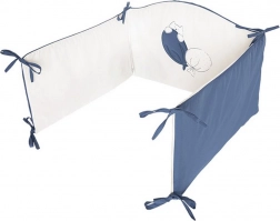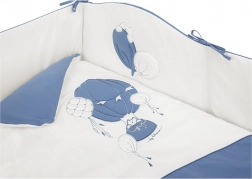 Stilska garnitura za posteljico BELISIMA Ballons v modro-beli kombinaciji navduši z igrivimi motivi balonov in nežnimi, pomirjujočimi barvami. Naravno zračen 100% bombaž je prijeten na dotik in nežen do občutljive dojenčkove kože.