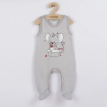 Pajac krasi kontrastni rob in velik motiv miške, jopica je enobarvna in se zapira po vsej dolžini. Kakovostna izdelava ustreza standardu češke znamke New Baby, kolekcija Mouse pa prepriča s čistim, brezčasnim dizajnom v nevtralni sivi barvi.