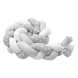 Stilska in varna pletena zaščitna pletenica za posteljico znamke NEW BABY ščiti dojenčka pred udarci ob letvice in zagotavlja prijetno, mirno okolje za spanje. Zaradi mehke polnitve in kakovostnega 100 % bombaža je prijetna na dotik, prožna in se zlahka prilagodi vsaki posteljici. Neutrbaren sivo-beli dizajn z zvezdicami se poda v vsako otroško sobo.