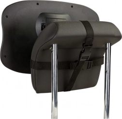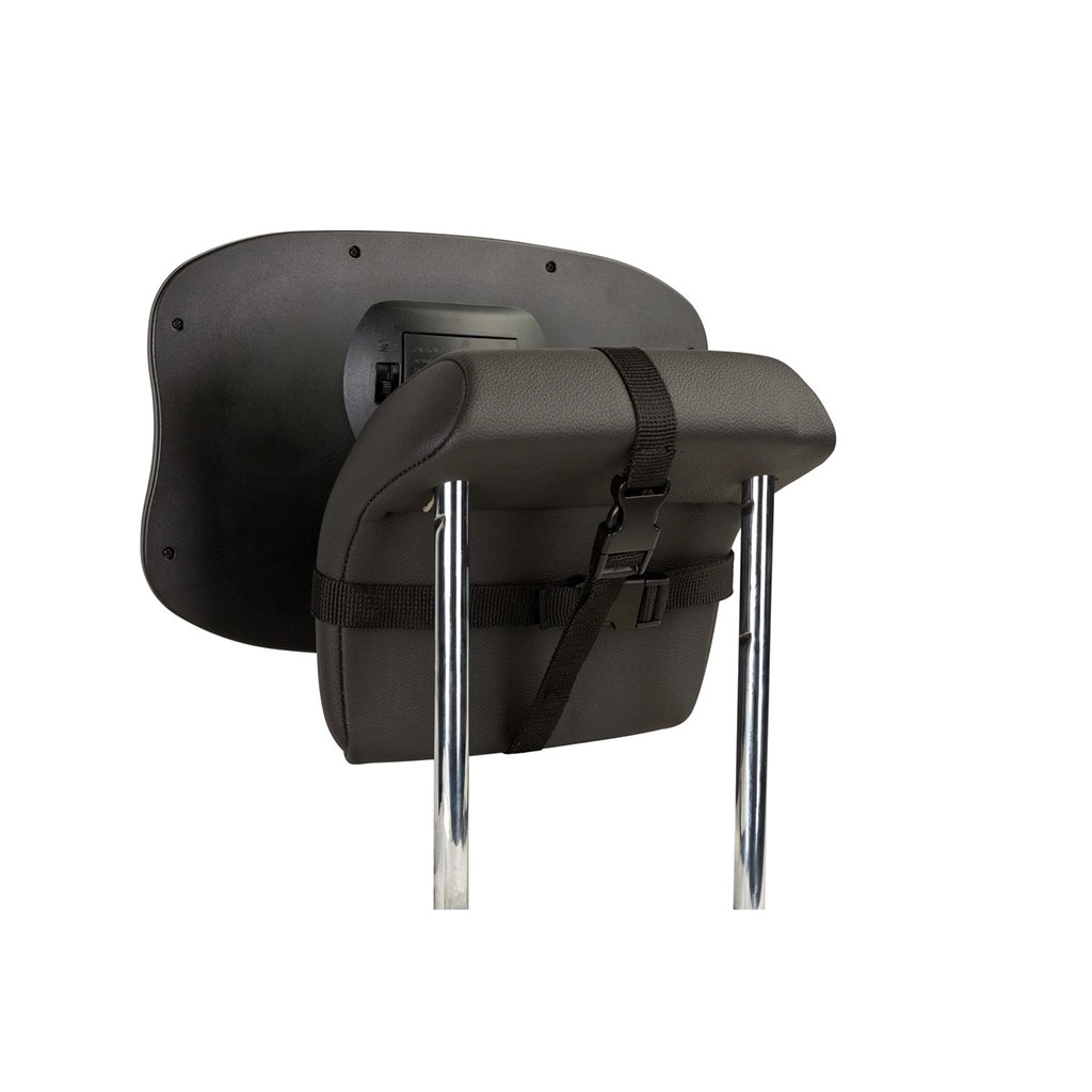 Nastavljivi trakovi z zaponkami omogočajo hitro namestitev na večino naslonov za glavo in čvrst oprijem brez tresenja.