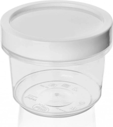 Zanesljiva in univerzalna okrogla posoda s prostornino 300 ml z belim pokrovom in prosojnim ohišjem, ki omogoča enostaven pregled vsebine brez odpiranja. Zahvaljujoč kakovostnemu tesnilu je posoda izjemno tesna in ohranja vašo hrano dlje svežo – brez nevarnosti razlitja med prenašanjem.
