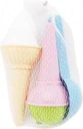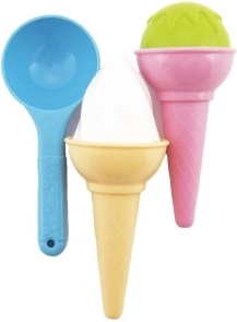 Ta igrivi komplet za pesek otrokom omogoča pripravo »sladolednih« dobrot za prijatelje in družino. Zaradi lahkih in prijetno obarvanih delov se otroci učijo sodelovanja, razvijajo fino motoriko in se zabavajo pri igrah vlog, kot so kavarna, restavracija ali trgovina.