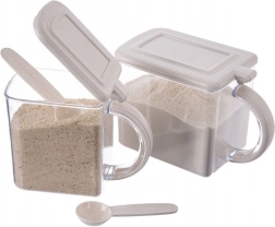 Za maksimalno udobje ima posoda ergonomski ročaj za enostavno prenašanje, praktično žličko za natančno odmerjanje in pokrov s tečajem, ki se udobno odpira in hkrati učinkovito ščiti vsebino pred vlago. Pomaga ohranjati red v kuhinji doma in v gastronomiji.