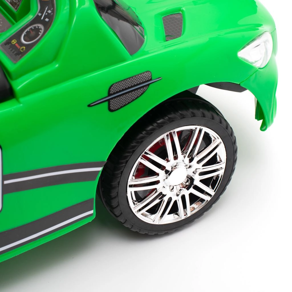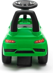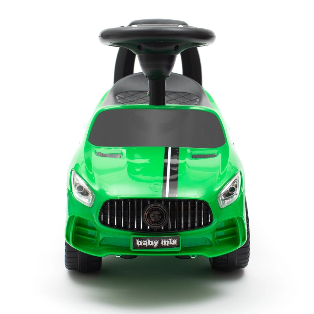 Poganjalec BABY MIX Racer je zasnovan za udobne prve vožnje in razvoj grobe motorike otrok. Realistične podrobnosti, kot so “armaturna plošča”, športen videz, kromirana platišča in izrazite nalepke, ga naredijo privlačno igračo za dom in zunaj. Vrtljiva sprednja os olajša upravljanje, zvočni efekti pa spodbujajo zabavo in senzorično zaznavanje.
