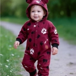 Ta udoben otroški pajac NEW BABY Paw v temno rožnati barvi navduši z nežnim, gladkim materialom in igrivim dizajnom s tačkami. Kapuca z ljubkimi ušeski ter elastični patenti na rokavih in hlačnicah zadržujejo toploto in zagotavljajo udobje pri vsakodnevni uporabi.