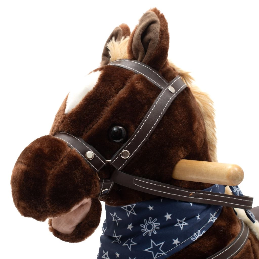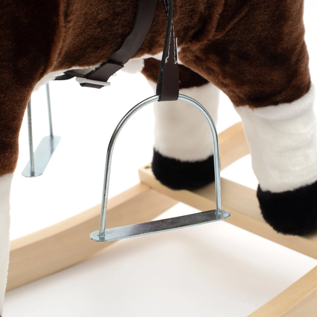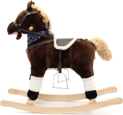 Prisrčen gugalni konjiček BABY MIX je idealen prijatelj za male jahače od 18 mesecev dalje. Ponaša se z mehkobnim plišem, stabilnimi lesenimi letvami, kovinskimi stremeni in interaktivnimi ušeski z zvoki galopa, rezgetanjem in kavbojsko pesmijo. Zahvaljujoč udobnemu sedlu, čvrstim vajetam in lesenim ročajem je vožnja varna in zabavna ter spodbuja ravnotežje in motoriko otrok.