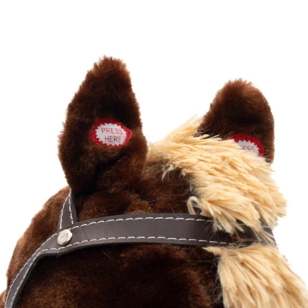 S pritiskom na ušeska konjiček rezgeta, galopira, poje kavbojsko pesmico ter premika rep in gobček. Zabava, ki otrok ne bo hitro naveličala.