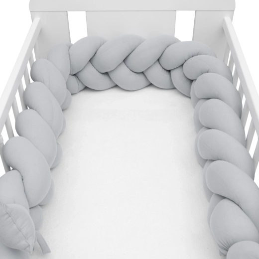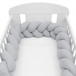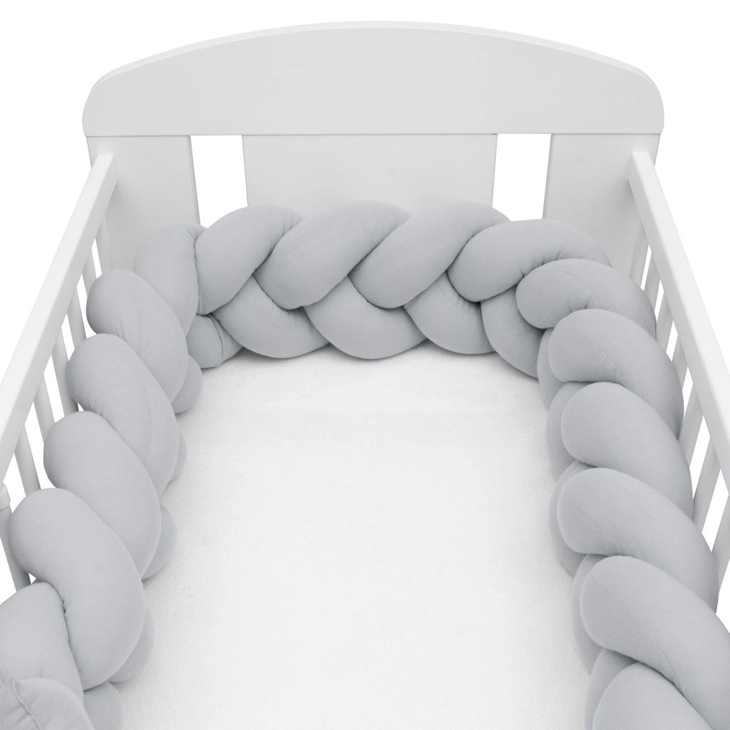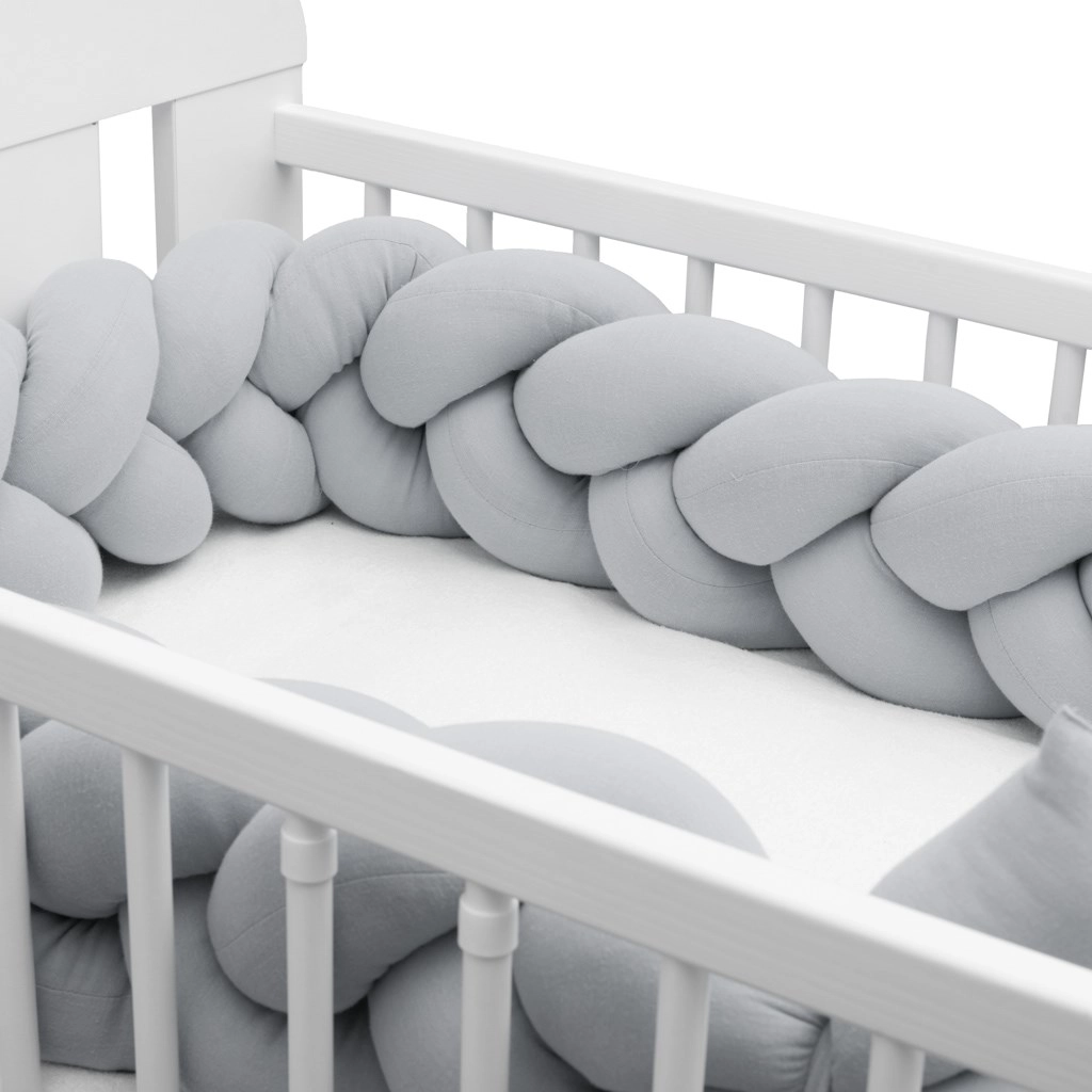 Mehak musalinski kitenec New Baby v svetlo sivi barvi je sodobna zaščitna obloga za otroško posteljico, ki zagotavlja varnost, udobje in kroženje zraka. Zahvaljujoč zračnemu muslinu in antialergijskemu polnilu ščiti dojenčka pred udarci ob letvice, izolira pred mrazom in se zlahka prilagodi vsaki posteljici.