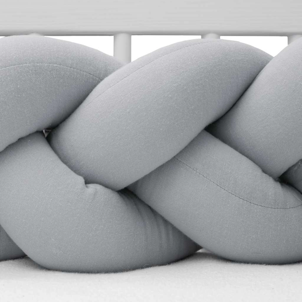 Lahek in nežen muslin je cenjen zaradi svoje zračnosti – “diha”, uravnava temperaturo in zmanjšuje tveganje pregrevanja. Ročno pleten kitenec iz treh pramenov deluje dekorativno, je mehak na otip in hkrati dovolj čvrst, da ustvari varno pregrado okoli dojenčka.