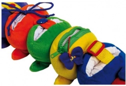 Ta barvita tekstilna stonoga je zasnovana tako, da otroke spodbuja k odkrivanju in učenju. Zahvaljujoč šestim različnim zapiralom si otroci postopoma osvojijo praktična opravila, ki jih uporabljajo v vsakdanjem življenju. Prijetna plišasta površina vabi k crkljanju in spodbuja senzorično zaznavanje.