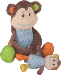 Ta velika plišasta opička CHEEKY znamke Bigjigs Baby je idealna spremljevalka za najmlajše. Mehko telesce, cart dizajn in odstranljiva mala opička prinašajo veliko zabave in umirjanja. Vgrajeno grizalo blaži občutljive dlesni, medtem ko ropotuljica spodbuja sluh in pozornost.
