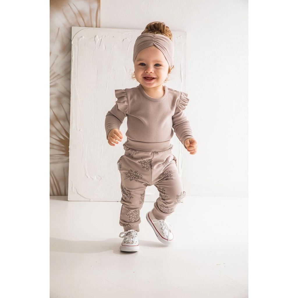 Hlačke iz kolekcije Ella so zasnovane z mislijo na potrebe najmlajših. Kakovosten bombažni jersey je prijazen do občutljive kože, medtem ko elastan zagotavlja elastičnost in svobodo gibanja. Bež izvedba z diskretnim potiskom se zlahka kombinira z drugimi kosi garderobe.