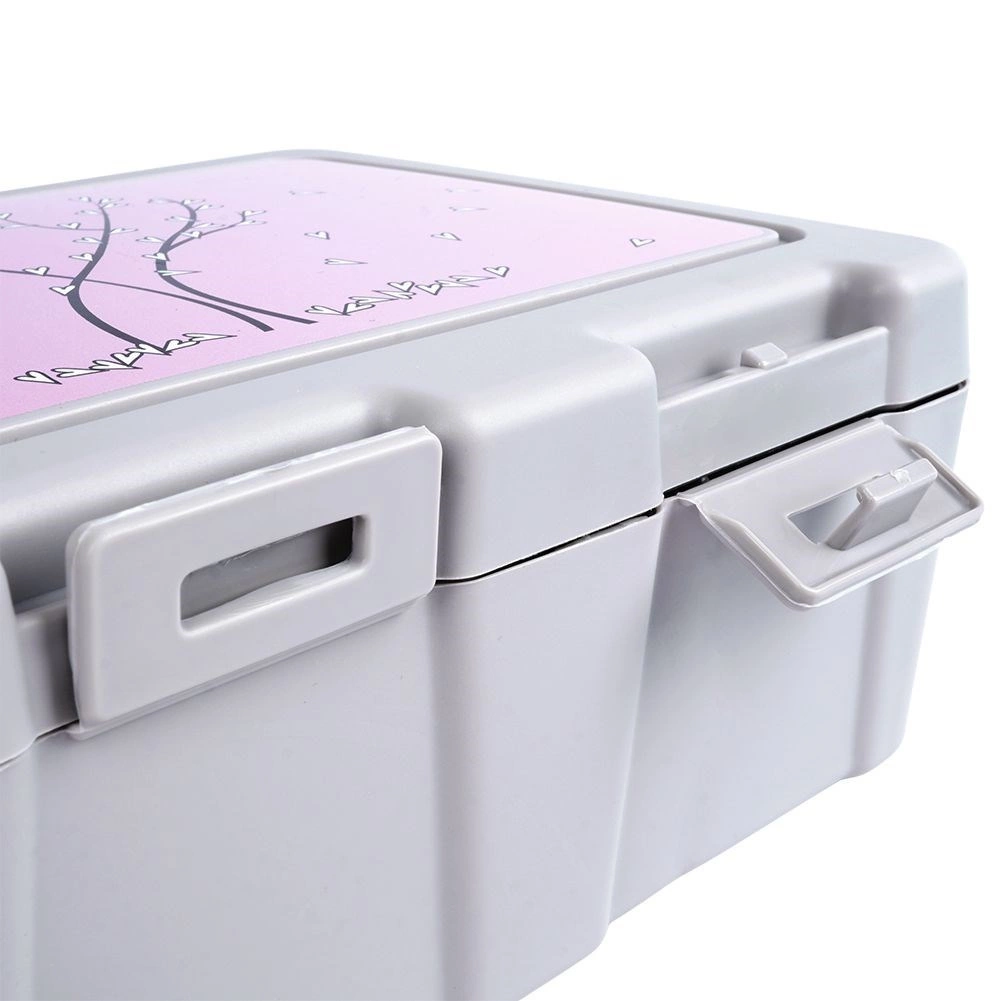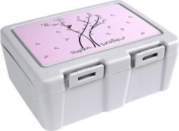 Škatla je izdelana iz kakovostne plastike, varne za stik z živili, v elegantni sivi barvi z dekorativnim rožnatim panelom s srčki. Idealna za otroke v šoli in odrasle v službi, na izletih ali potovanjih. Za ohranitev videza se ne priporoča pomivanje v pomivalnem stroju niti segrevanje v mikrovalovni pečici.