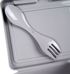 Kompaktna žličko-vilica (14,5 cm) ima svoje mesto pod pokrovom, zato je ne boste pozabili in prihranili boste prostor v torbi.
