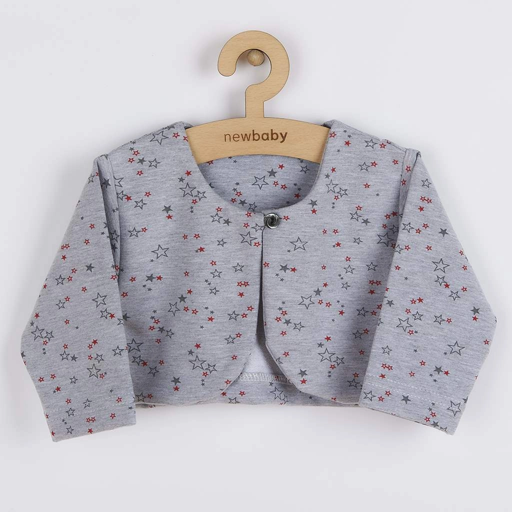 Stajliš 3-delni komplet za male gospodične NEW BABY Emma združuje udobje in prikupen dizajn. Vsebuje krilce A kroja z zvezdicami, bolero na gumb in raztegljiv naglavni trak. Mehak in prijeten material z dodatkom elastana zagotavlja odlično udobje in svobodo gibanja, idealno za vsak dan in za slavnostne priložnosti.