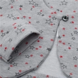 Ta dekliški komplet je zasnovan za največje udobje in slog. A-kroj krila s celoplošnim potiskom zvezdic ima širši elastičen pas za popolno prileganje. Bolero z dolgimi rokavi se zapenja na en gumb in odlično dopolni vsak outfit. Širok, raztegljiv naglavni trak udobno stoji in v rahlo hladnem vremenu nadomesti kapico.