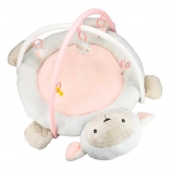 Pravljično mehka igralna podloga v obliki ovčke dojenčku nudi največje udobje in naravno motivacijo za raziskovanje. Zaradi zračnega poliestrskega polnila ostane podloga dolgo puhasta in prožna, zagotavlja oporo za glavico in ohranja lep videz. Mehki loki z igračkami podpirajo koordinacijo roka–oko in na zabaven način razvijajo čute.