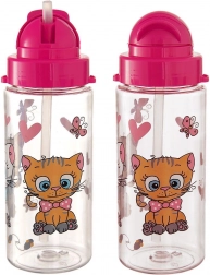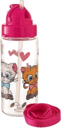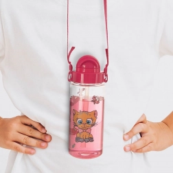 Ta otroška steklenička združuje varen tritan z uporabnimi podrobnostmi za vsakodnevno rabo. Zahvaljujoč preklopnemu pokrovčku ustnik ostane čist, pijača pa se ne polije. Vesel motiv mucka otroke spodbuja k rednemu pitju.