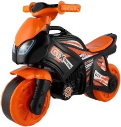 Otroški poganjalec motor v športnem dizajnu bo razveselil vse male ljubitelje hitre vožnje. Zaradi trpežne plastične konstrukcije je idealen za zabavno in varno igranje. Dizajn je pretežno oranžno-črne barve z logotipi GTX Racing, ki dajejo občutek pravega dirkalnega motorja.