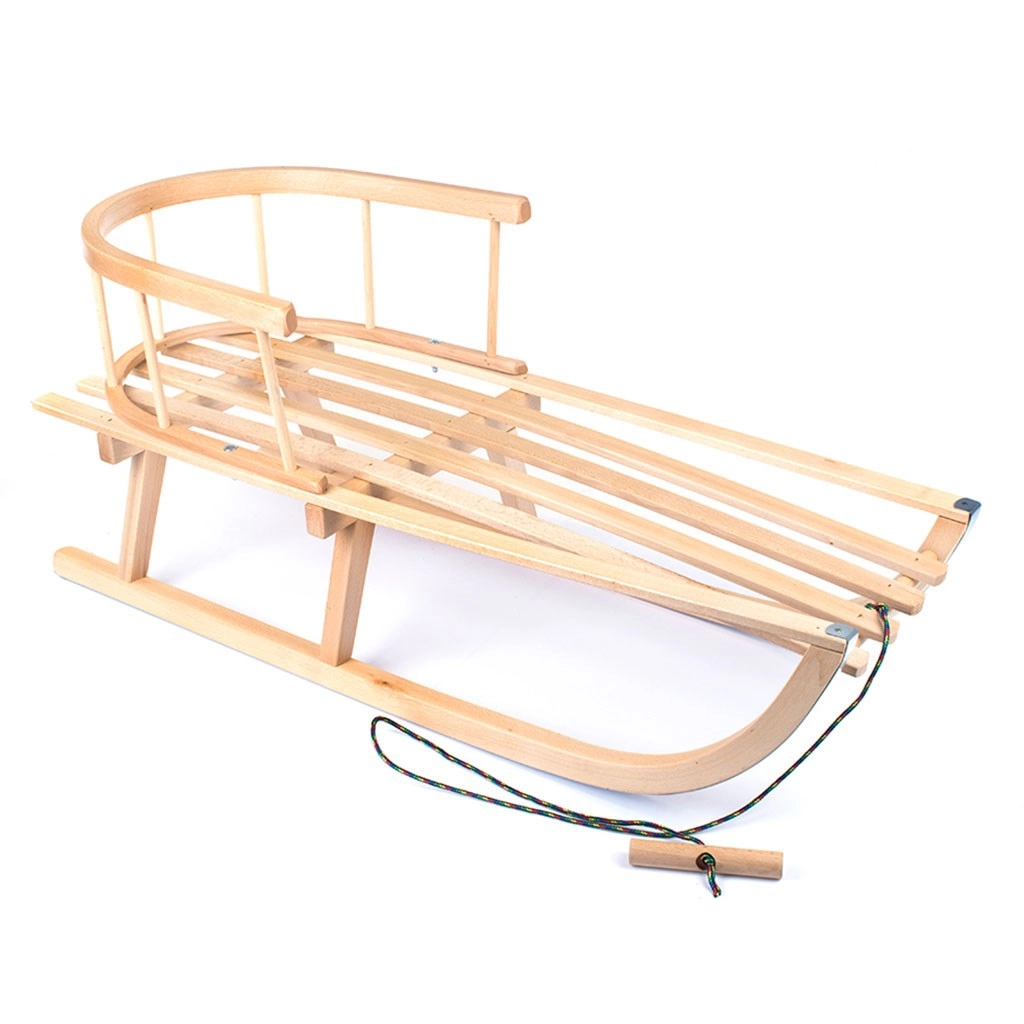 Uživajte v zimi z zanesljivimi sanmi iz bukovega lesa. Zaradi trdne izdelave, z kovino ojačanih drsnic in povišanega naslona so primerne za otroke, ki cenijo varnost in udobje. Naravni brezbarvni lak je zdravstveno neoporečen in poudari strukturo lesa.