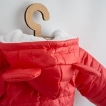 Stajliš zimski kombinezon za dojenčke znamke NEW BABY Pumi zagotavlja vašemu malčku toploto, udobje in preprosto oblačenje. Ima dve stranski zadrgi za hitro preoblačenje, prisrčna ušeska na kapuci in je v celoti podložen z mehko wellsoft podlogo z antialergijskim polnilom za večjo toploto. Idealen za zimo in jesen.