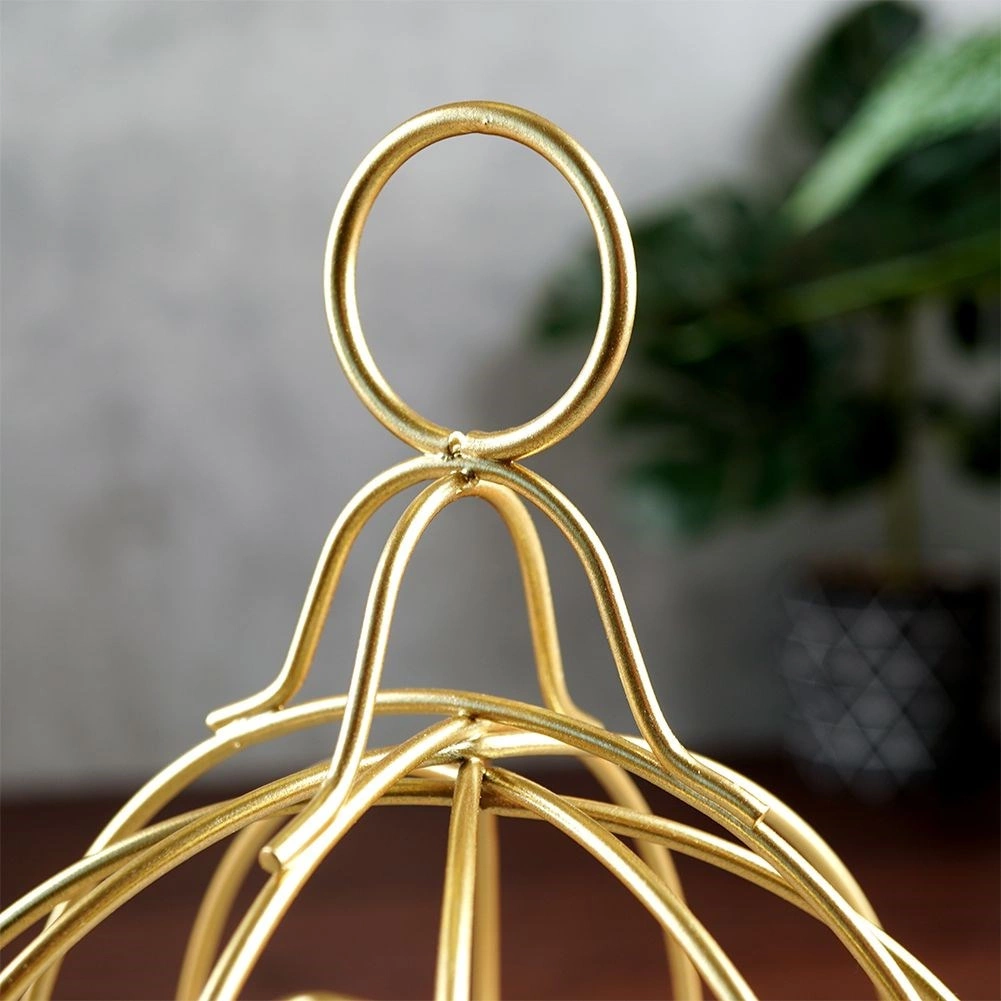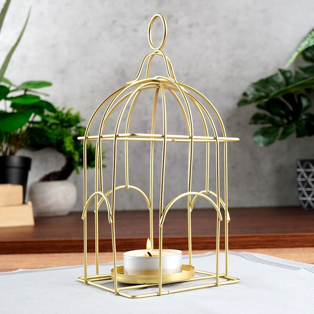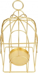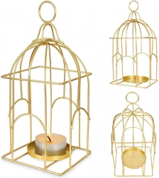 Eleganten lantern, navdihnjen z obliko kletke, ustvarja prijetno atmosfero z mehko svetlobo in hkrati deluje kot izrazita dekoracija. Trpežen kovinski okvir z zlato površinsko obdelavo zagotavlja dolgo življenjsko dobo in brezčasen videz, ki izstopa na mizi, komodi ali polici.