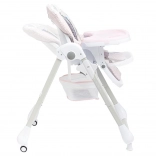 Praktičen in stilski stolček za hranjenje BABY MIX Infant v roza barvi je primeren za otroke od 6 do 36 mesecev (do 15 kg). Ponuja 7 stopenj višine, nastavljivo naslonjalo v 3 položajih, dvo-položajno oporo za noge in dvojni odstranljiv pladenj. Za enostavno premikanje ne manjkajo kolesca z zavorami, košarica za potrebščine in enostavno čistljivo prevleko za hitro vzdrževanje.