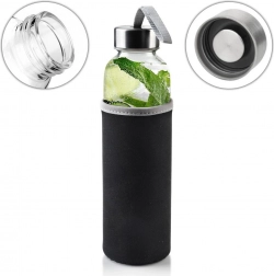 Zaradi univerzalne uporabe je popolna za vodo, limonade, sokove, smutije in domače koktajle. Steklenička ima kompaktne mere 6,5 × 22 cm in se zlahka prilega v nahrbtnik ali nosilec za steklenice. Stekleni del je po odstranitvi ovitka primeren za pomivalni stroj.