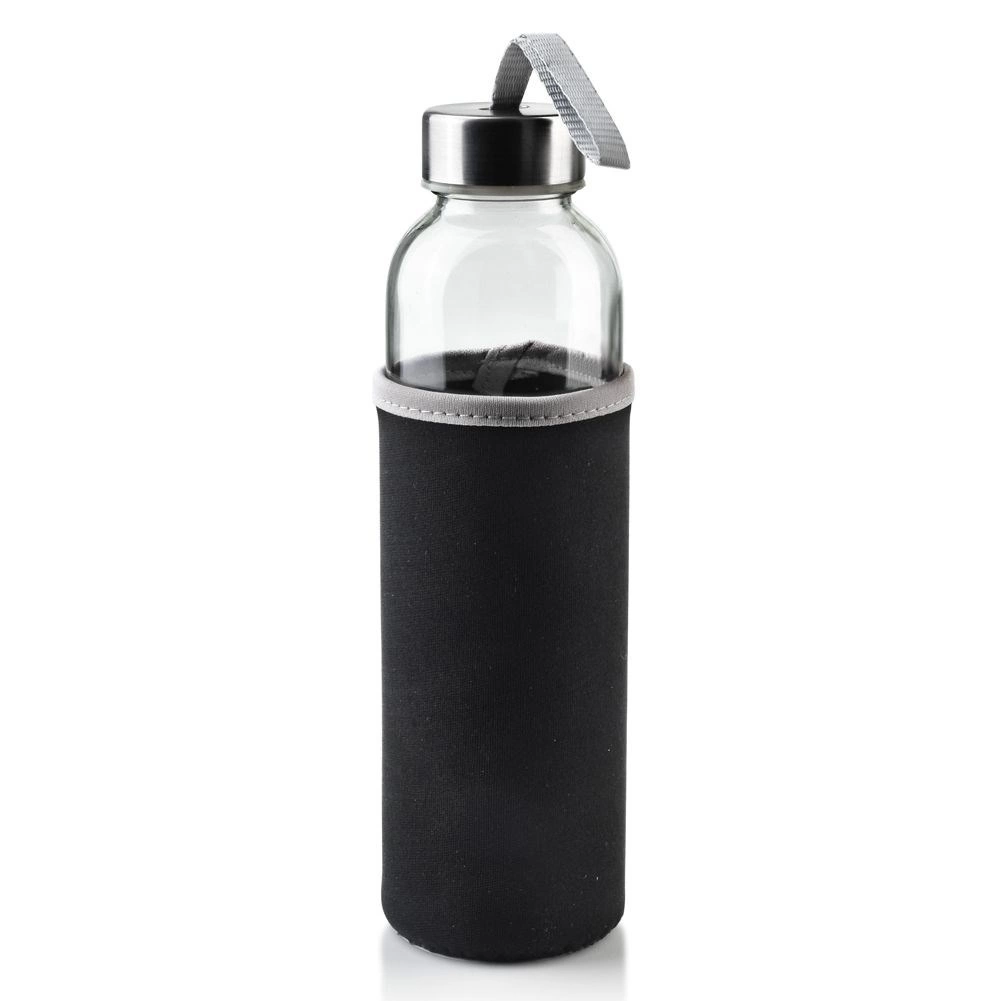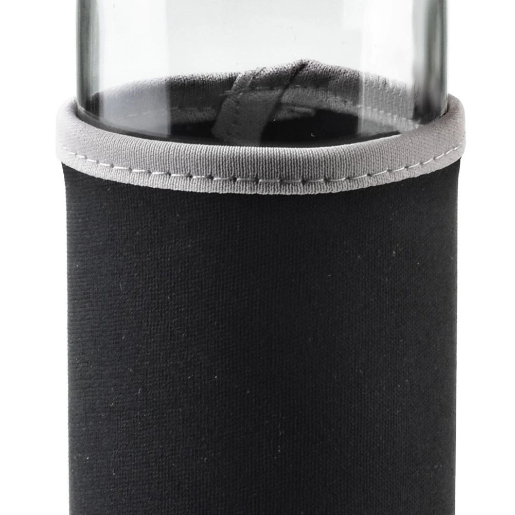 Črn neoprenski rokav ščiti stekleničko pred udarci, izboljšuje oprijem in pomaga dlje ohraniti stabilno temperaturo napitka.