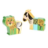 Lesene sestavljanke Veseli safari prinašajo otrokom od 2. leta naprej drugačno vrsto zabave: vsaka žival je sestavljena iz masivnih delov s skritimi magneti, ki se gladko spojijo. Deli se lahko izmenjujejo med posameznimi živalmi, s čimer nastajajo zabavni »hibridi«, ki spodbujajo domišljijo in radovednost.