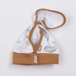 Dojenčkova kapica–šal Nicol združuje privlačen videz in funkcionalnost. Lahkoten in mehek 100 % bombaž zagotavlja maksimalno udobje in odlično zračnost, medtem ko se elastični rob nežno prilagodi glavici dojenčka brez neželenega pritiska.