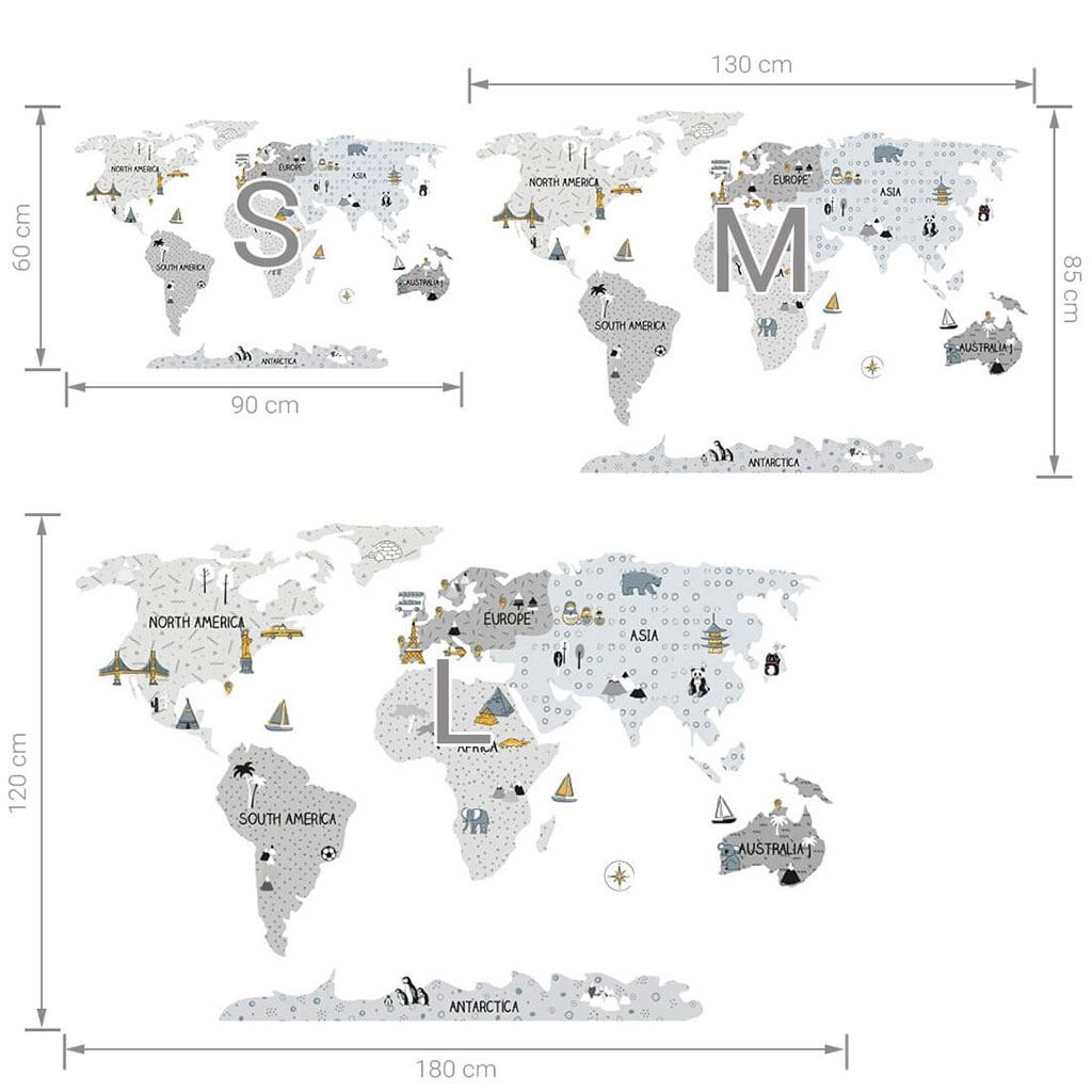 Odkrijte čudovito otroško dekoracijo in pametno pripomoček v enem: siva stenska nalepka z zemljevidom sveta v velikosti M. V nežnih skandinavskih tonih, s prikupnimi ikonami in izobraževalnimi elementi za učenje celin, oceanov in strani neba. Površino ščiti mat laminat proti praskam, posamezni deli pa se lepijo preprosto in natančno zahvaljujoč ločenemu izrezu.
