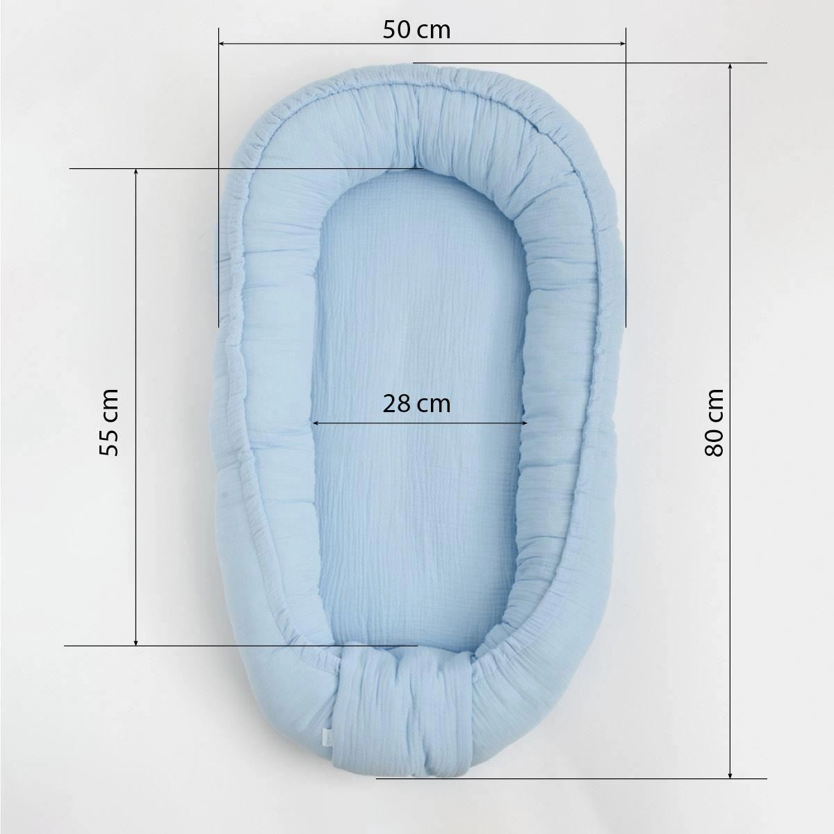 Muslinovo gnezdece za dojenčka NEW BABY ustvari prijeten in zaščiten prostor, kjer se malček počuti varno kot v naročju. Lahek in zračen muslin v kombinaciji z mehkim, antialergijskim polnilom prinaša udobje za vsakodnevni spanec in miren počitek. Zaradi brezčasne bele barve se odlično poda v vsak interier.