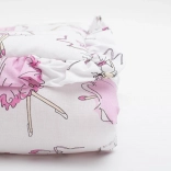 Komplet je idealen za sprehode in domačo uporabo v vozičku. Barvno obstojen potisk z motivom balerine je vizualno pomirjujoč in ne pušča madežev na oblačilih. Zaradi prijetne mehkobe materiala bo vaš malček na toplem in v udobju skozi vse leto.