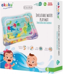 Vodna podloga Akuku je idealen pripomoček za krepitev mišic vratu, hrbta, ramen in trebuščka med igro na trebuščku. Gibajoče se oblike v vodni komori otroka spodbujajo k dvigovanju glavice, obračanju in iztezanju rokic, s čimer podpirajo pravilen motorični razvoj in koordinacijo oko–roka. Podloga je čvrsta, tesna in enostavna za vzdrževanje.