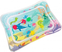 Zabavna in varna vodna podloga za dojenčke od 6 mesecev podpira tummy time, razvoj motorike in senzorično stimulacijo. Dovolj je, da napihnete rob, sredino napolnite z vodo in pustite otroku, da odkriva barvite plavajoče živali, ki se ob pritisku premikajo. Podloga je iz trpežnega materiala, je BPA free, ima certifikat CE in se po izpraznitvi vode zlahka zloži za na pot.