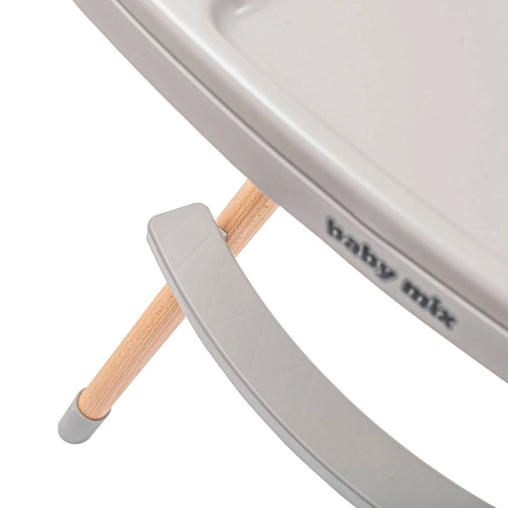 Praktičen visok otroški stolček Baby Mix 2v1 olajša vsakodnevno hranjenje zahvaljujoč nastavljivemu dvojnemu pladnju, 5-točkovnim varnostnim pasom in oblazinjenju iz eko usnja, ki ga je lahko čistiti. Stabilne lesene noge z proti‑drsnimi zaključki, udobna opora za noge ter možnost pretvorbe v nizek stolček ga delajo univerzalno rešitev za otroke od 6 do 36 mesecev.