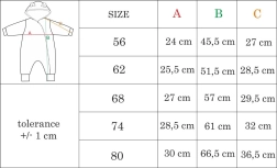 Premišljene podrobnosti zagotavljajo enostavno uporabo in vsakodnevno udobje. Stransko zapiranje z zadrgo po celotni dolžini bistveno olajša oblačenje in previjanje. Rokavčke je mogoče zavihati in razkriti mehko podlogo; praktičen kožušček na koncih rokavov omogoča prekritje dojenčkovih ročic.