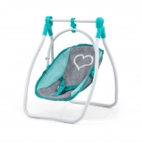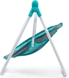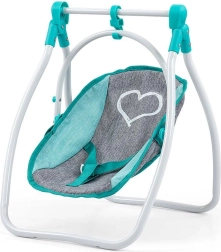 Varen gugalnik s stabilno A-konstrukcijo in udobnim tekstilnim sedežem zagotavlja veliko zabave pri negi punčke.