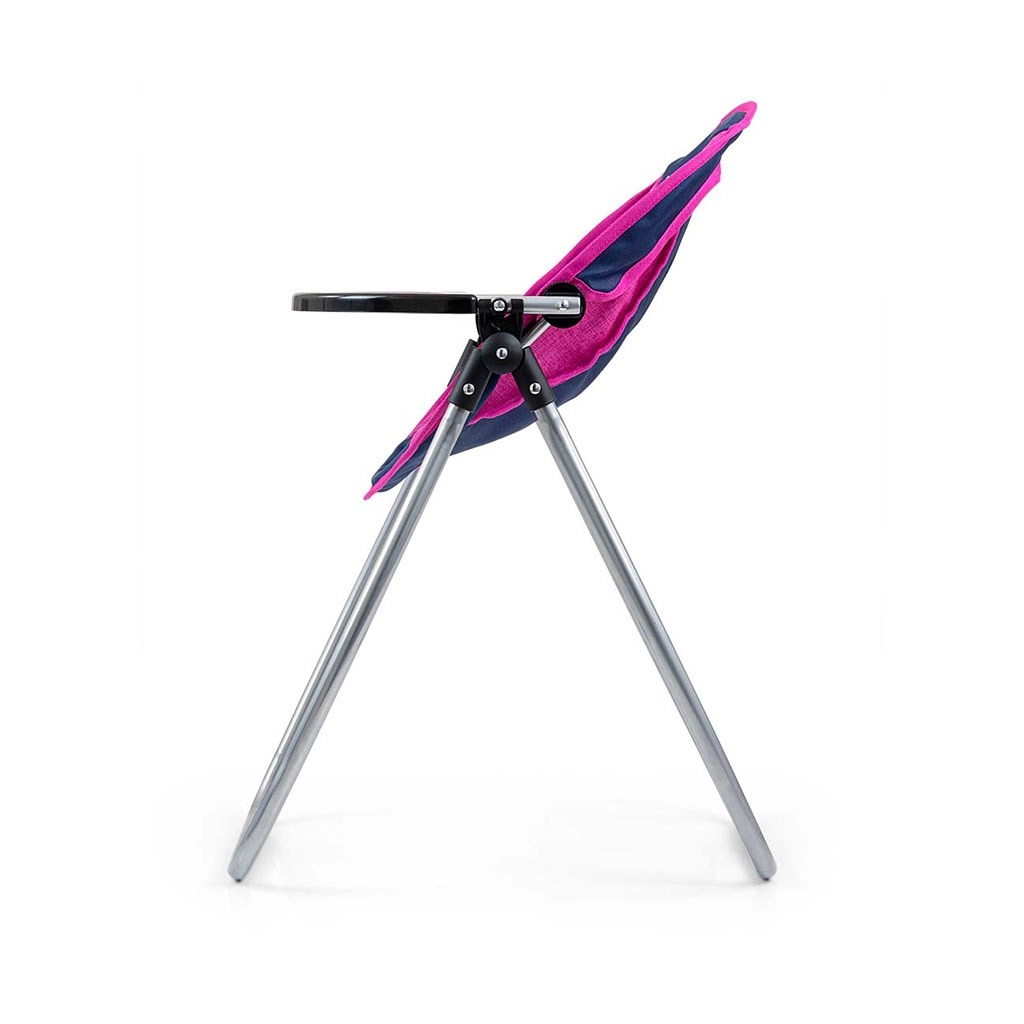Lahka kovinska konstrukcija, udoben sedež in okrogel pladenj za varno »hranjenje« punčke. Stolček se enostavno zloži za prihranek prostora in preprosto potovanje.