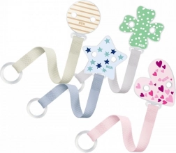 Prožen silikonski obroček omogoča hitro in zanesljivo pripenjanje na večino dud, vključno s tistimi brez klasičnega držala.