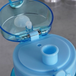 Praktičen pokrovček z varovalom preprečuje nenamerno odpiranje in iztekanje. Ustnik lahko upravljate z eno roko, zato lahko udobno pijete tudi med gibanjem.