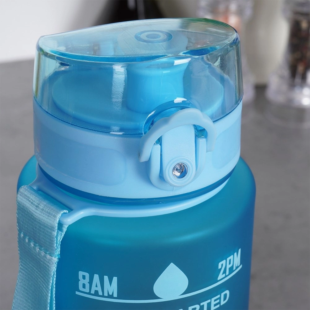 Uživajte v redni hidraciji z lahko in vzdržljivo steklenico s prostornino 1 liter. Zahvaljujoč časovnim oznakam in motivacijskim frazam boste pili postopoma čez dan, medtem ko natančna merilna lestvica v mililitrih (100–900 ml) in fl oz pomaga nadzorovati vnos tekočin. Širok vrat olajša polnjenje in čiščenje, pokrovček na preklop z varovalom proti nenamernemu odpiranju pa zagotavlja zanesljivo tesnjenje.