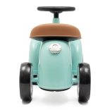 Retro poganjalec v mint barvi je idealno prvo vozilo za male pustolovce. Zaradi ergonomskih oblik, nizke mase in stabilne štirikolesne konstrukcije je enostaven za upravljanje ter pomaga razvijati koordinacijo, stabilnost in samozavest pri gibanju. Stilski detajli, kot sta sprednja »maska« v srebrni barvi in imitacija rezervoarja za gorivo, bodo navdušili vsakega malega ljubitelja avtomobilov.