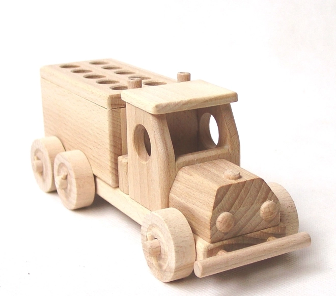 Vnesite red na mizo otrok in odraslih z izvirnim stojalom v obliki tovornjaka. Izdelano je iz vrhunskega bukovega lesa, njegova površina je le voskana in polirana brez kemičnih obdelav in barvanja – zato ohranja naravni videz in vonj lesa. Vrtljiva kolesca ter zaobljeni robovi zagotavljajo varno in zabavno uporabo.