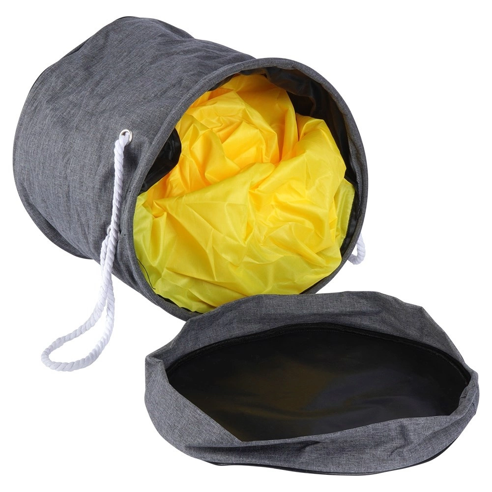Koš je lahek, zložljiv in prenosen – vrvni ročaji olajšajo rokovanje, pokrov pa varno zapre vsebino. Uporabljali ga boste doma, na pikniku, pri kampiranju in pod šotorom. Kadar ga ne potrebujete, ga preprosto zložite in prihranite prostor.