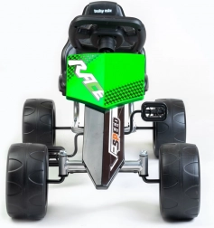Velika, trpežna plastična kolesa z ležaji zagotavljajo stabilnost in udobje brez tveganja predrtja. Gokart izpolnjuje evropske varnostne standarde, zato si lahko starši in otroci brezskrbno privoščijo zabavo na svežem zraku.